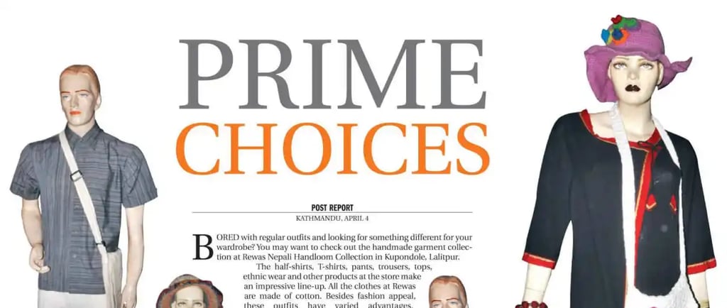 BORED with regular outfits and looking for something different for your wardrobe? You may want to check out the handmade garment collection at Rewas Nepali Handloom Collection in Kupondole, Lalitpur. The half-shirts, T-shirts, pants, trousers, tops, ethnic wear and other products at the store make an impressive line-up. All the clothes at Rewas are made of cotton. Besides fashion appeal, these outfits have varied advantages